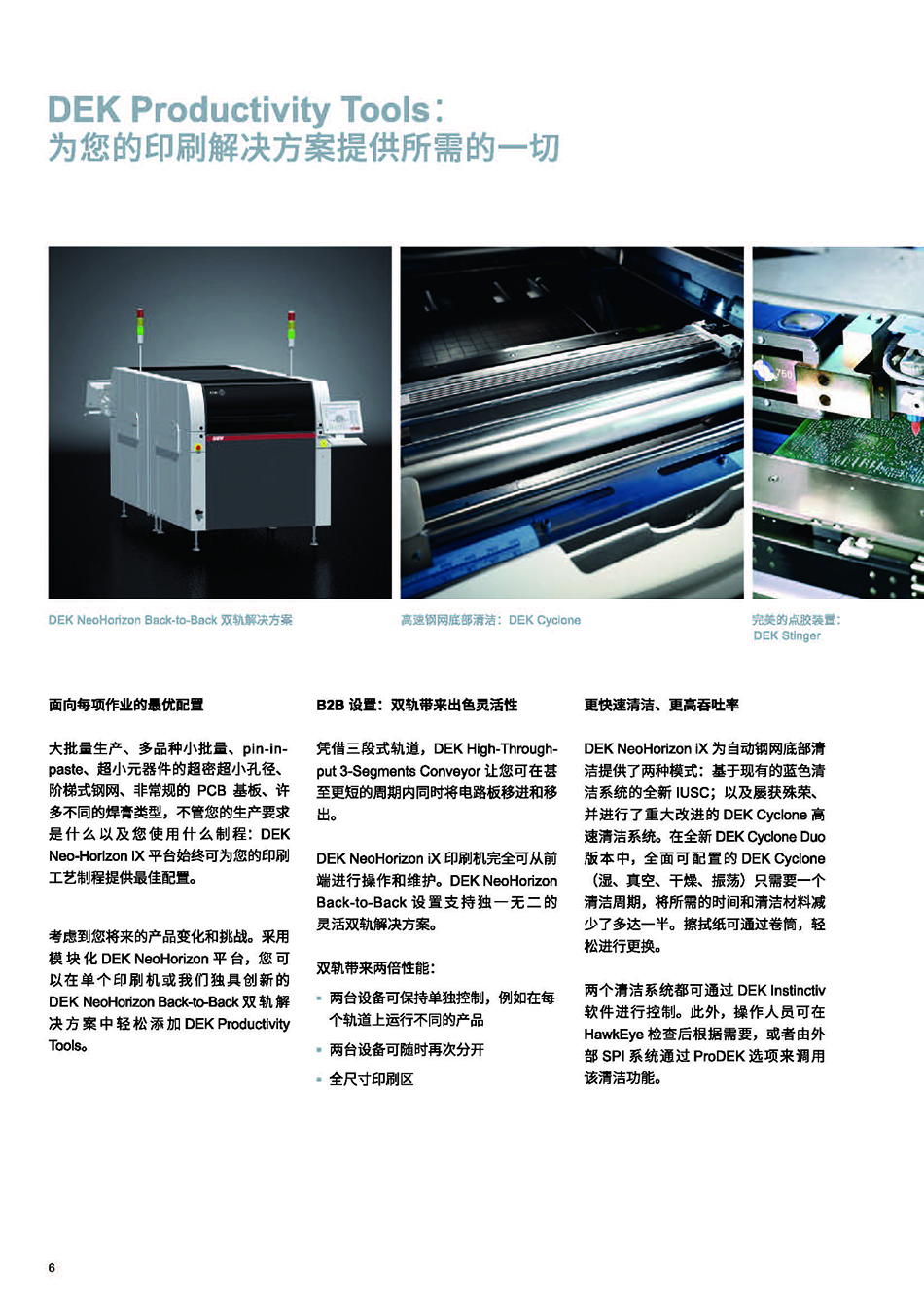 DEK提供业界最强大、最灵活的印刷平台。以下可改装的DEK选项可帮助您进一步提高DEK NeoHorizon 印刷机的生产力和质量:
