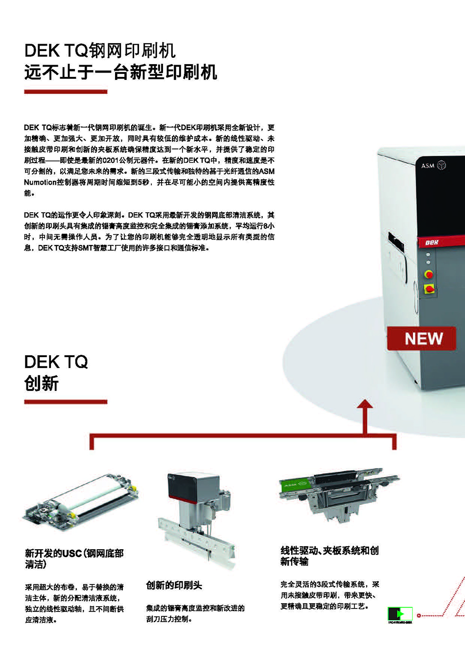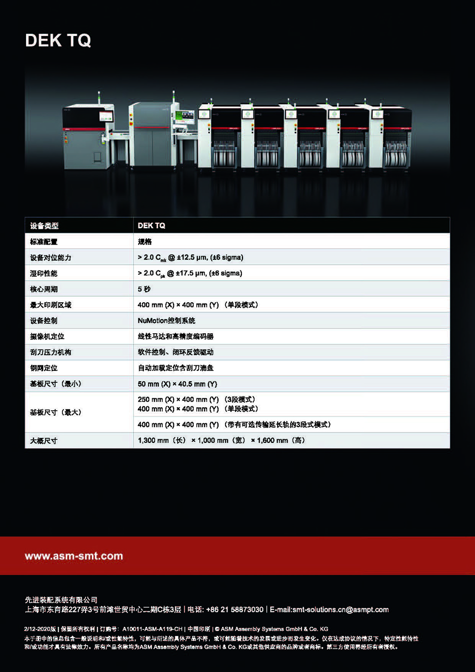 湿印精度高达±17.5 µm @ 2 Cpk(在交付每一个DEK TQ之前,都会有外部的AVS系统进行检测和认证)